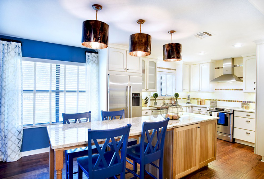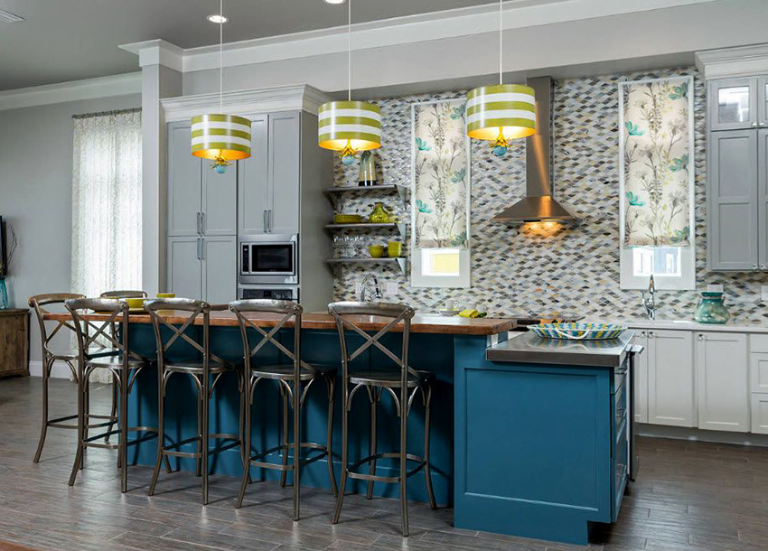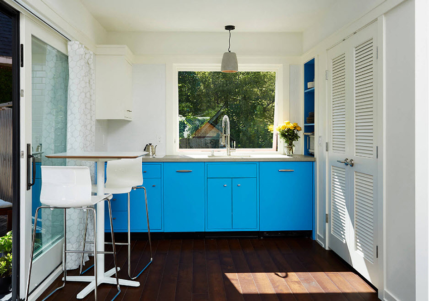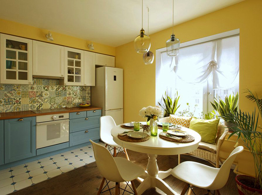 It is perfectly acceptable to use bright colors such as orange, pink and turquoise when creating a kitchen curtain design, which will help create a playful and cheerful interior that matches the mood of the owners. If you give preference to yellow or lemon tulle, then the kitchen is guaranteed to become a source of good mood. A product in light blue or blue will fill the room with tranquility - in such a kitchen it is easier to relax and unwind.