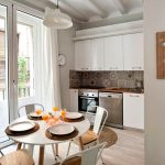 Thanks to its characteristics, tulle is easy to clean and easy to wash. At the same time, room designers are increasingly recommending the use of shortened curtains for the kitchen that do not fall below the window sill.