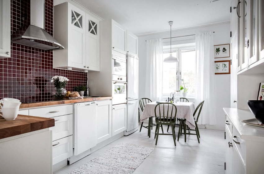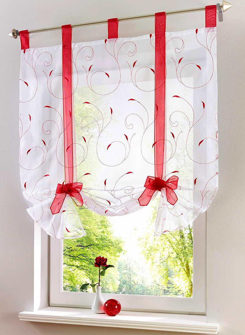 If you want to create an individual mood in the kitchen, it is recommended to use more expressive shades, such as red, burgundy, lavender or purple. These custom tulle options will help freshen up the interior and make it stylish. To make the kitchen look more harmonious, you should use several decor options in the same colors as the curtain. It is recommended to choose unusual and dark shades only in medium and large kitchens. If preference is given to a dark shade, then the room should be sufficiently filled with both natural and artificial light.