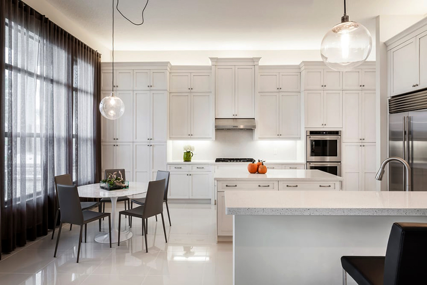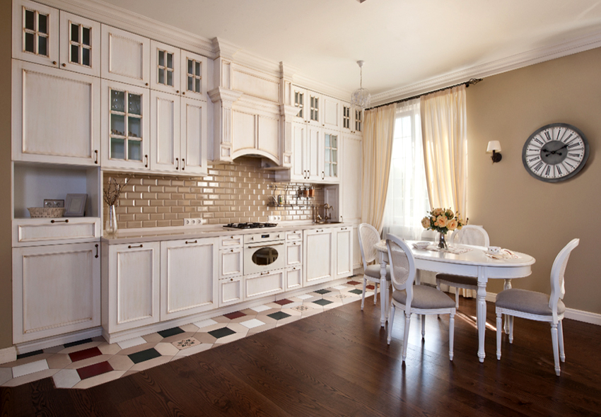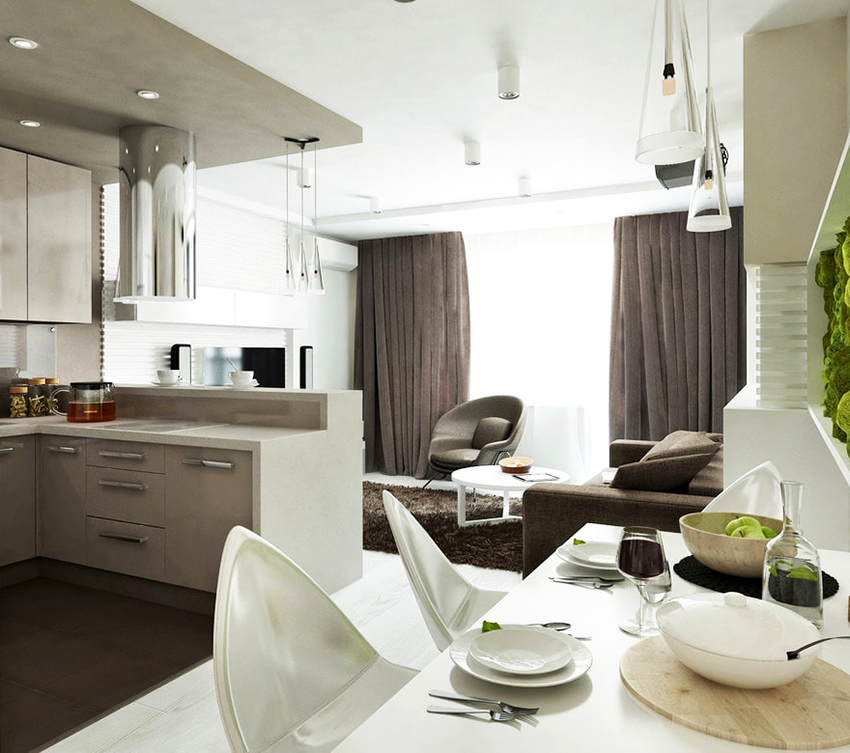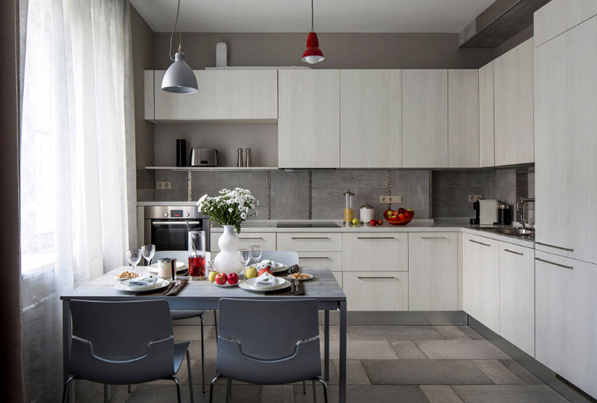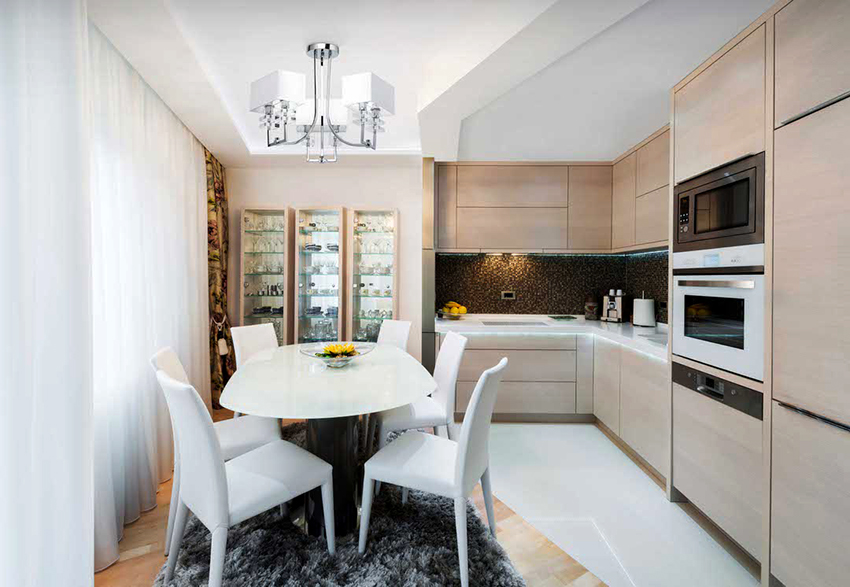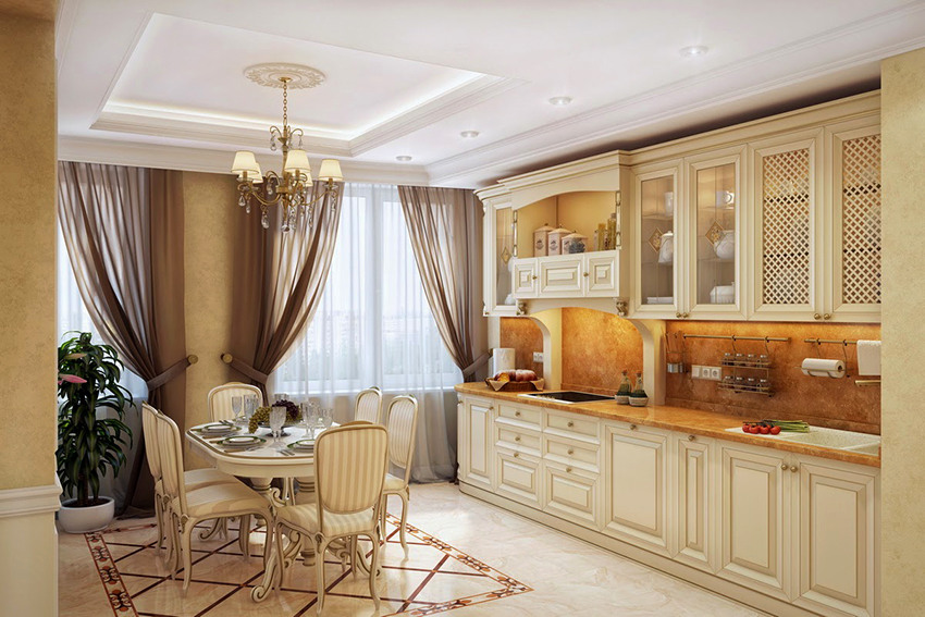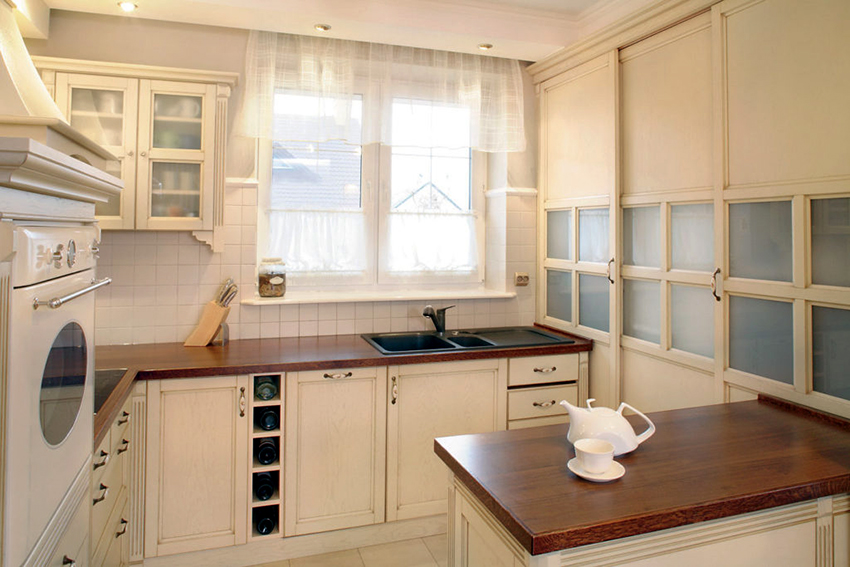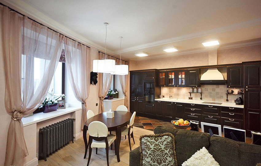 Many people believe that it is important to use light-colored tulle not only to create a light kitchen design, but also for darker interiors. The following shades are considered popular: