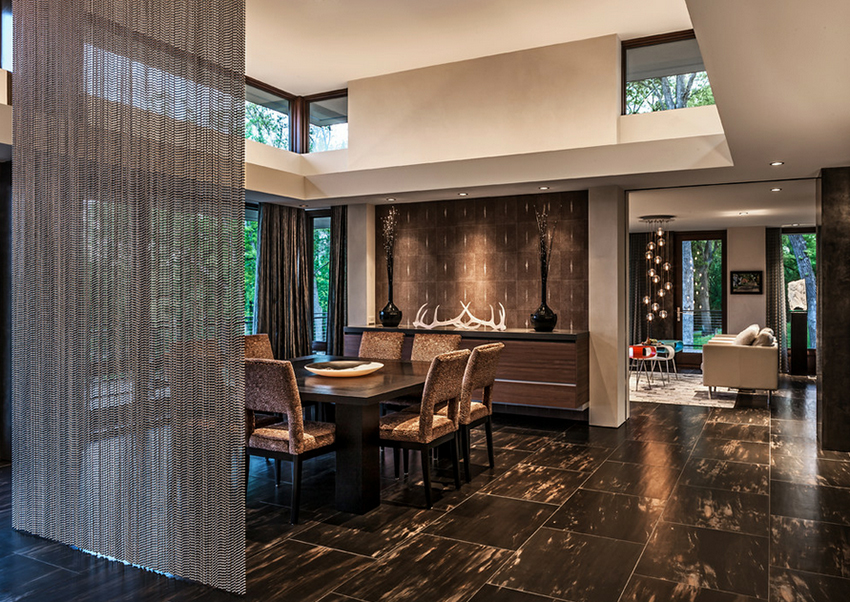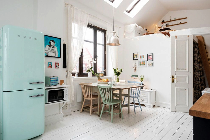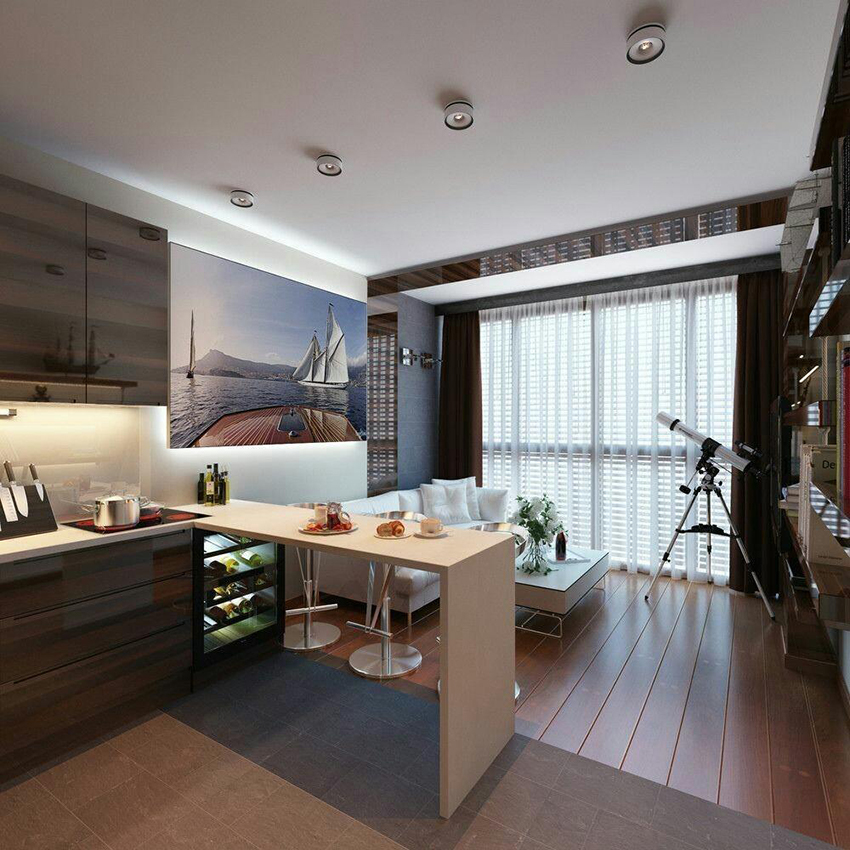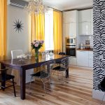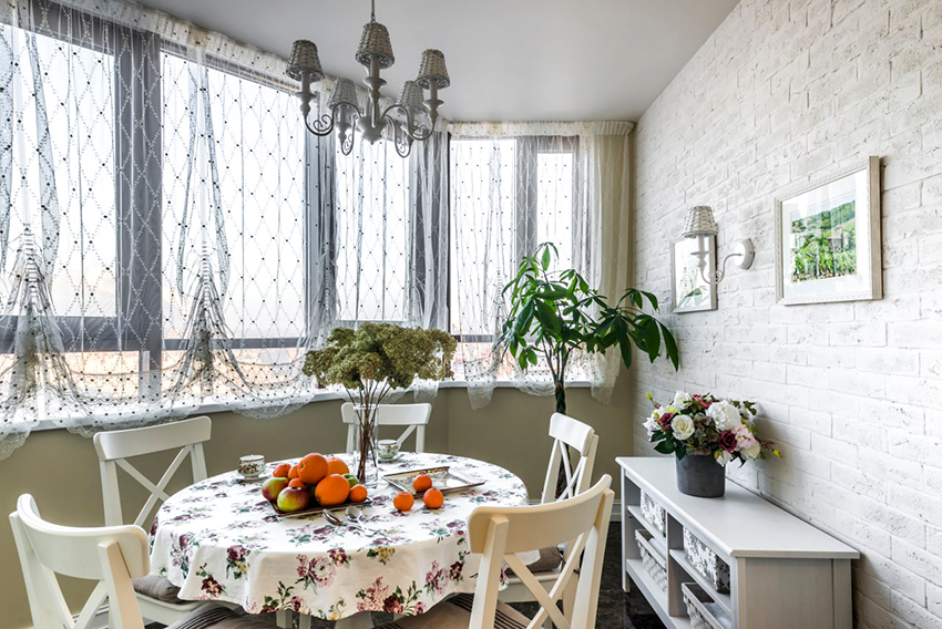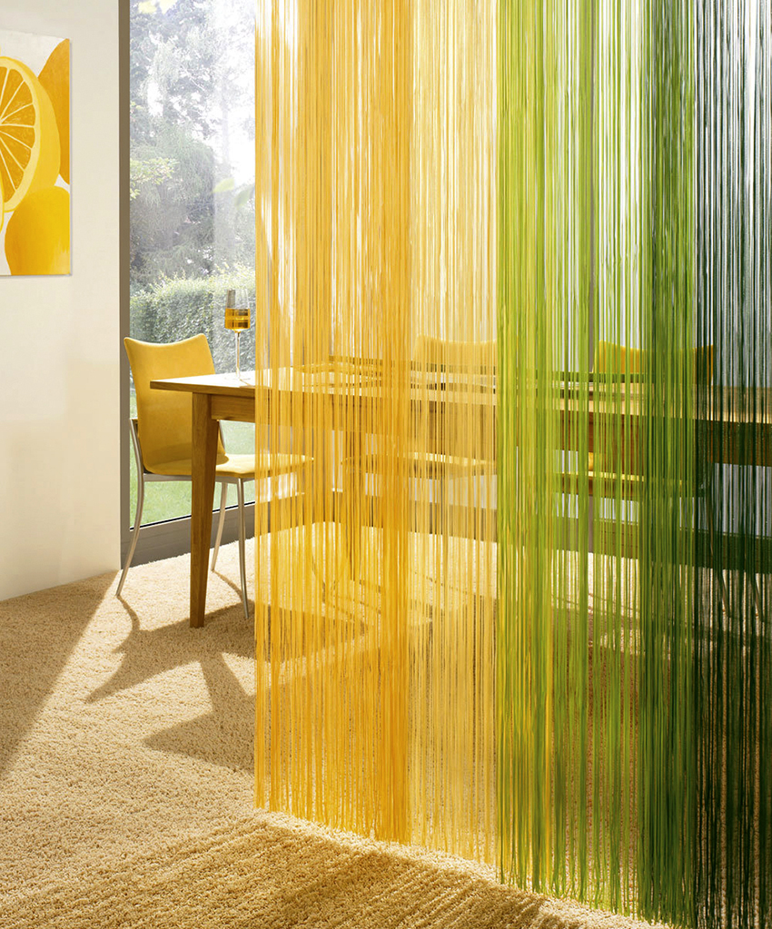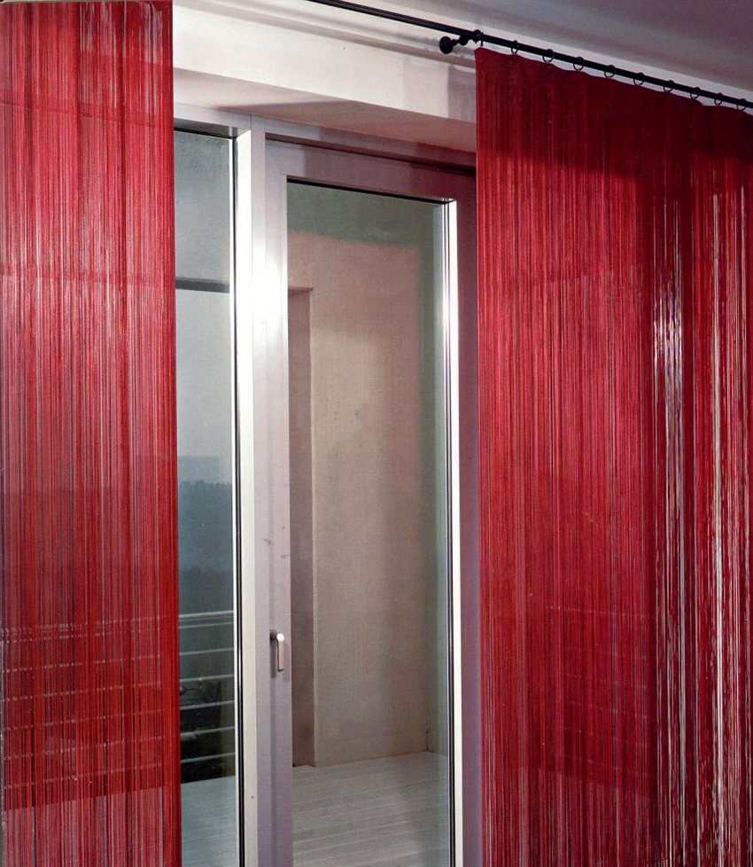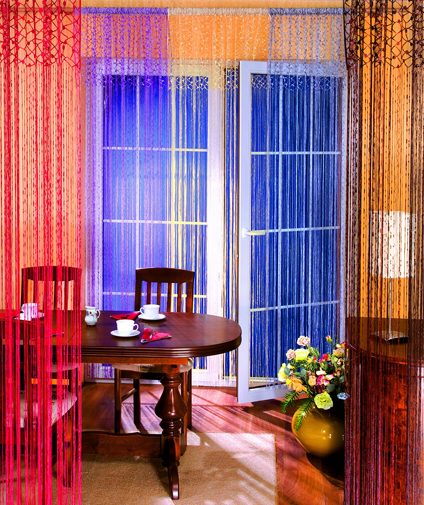 It is interesting! Often, yarn tulle is used for zoning space. You can hang such tulle on the balcony, combined with the kitchen, which plays the role of a dining area.