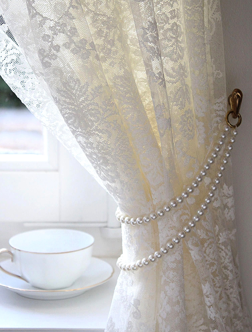 Organza on the windows is also considered a popular decor option, which is made using polyester fabric. In the production of this type of curtain, a durable and lightweight fabric made of dense fibers is used. Despite the high density of the fabric, organza curtains look light and airy in the photo. Products made of handmade lace look the most beautiful and unusual. However, it should be borne in mind that this option is very expensive.