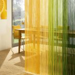 In the manufacture of this type of curtain, long or short threads are used, the width of which can reach 5 mm. To make the products look beautiful and shine in a special way, mother-of-pearl beads are used as small details. If you choose high-quality products, then the curtains will not fade in the sun and fade. In the event that the curtain is constantly exposed to draft and wind, individual threads may be intertwined. When washing, to prevent tangling of the muslin tulle, it should be pre-tied.