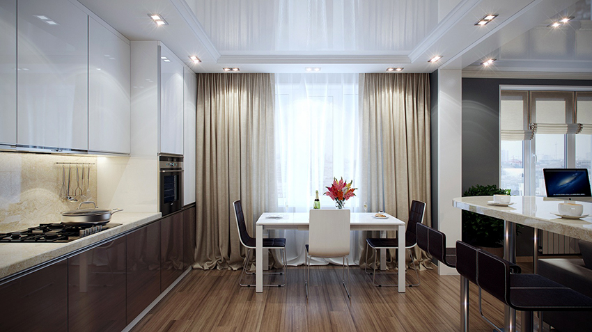 Each owner and hostess wants to make the kitchen an attractive and cozy place where it will be pleasant to cook and have joint meals. Window opening design considered the final stage in the arrangement of the kitchen interior. Recently, many have been striving to keep up with the times and create modern rooms, adhering to the foundations of minimalism. However, even in the design of ultra-modern interiors, it is allowed to use tulle, which will match and complement the overall design of the kitchen. It is the presence of curtains on the windows that helps to create a cozy and harmonious interior.