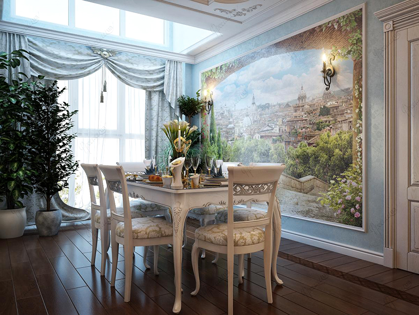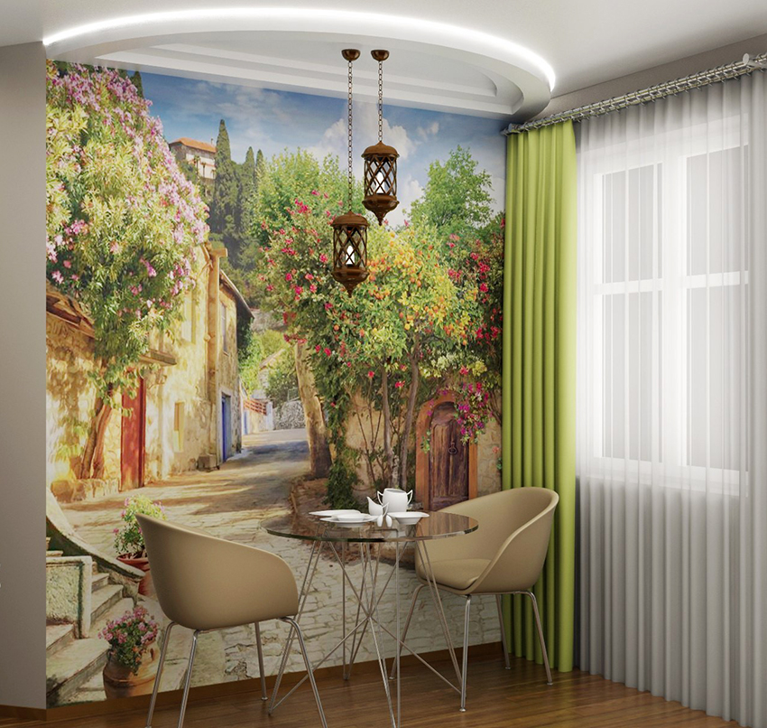Useful advice! If tulle has a multi-colored and complex design, then it is important that all the tones that are on the product are present in one way or another on furniture facades, walls, textile or other decorative elements.