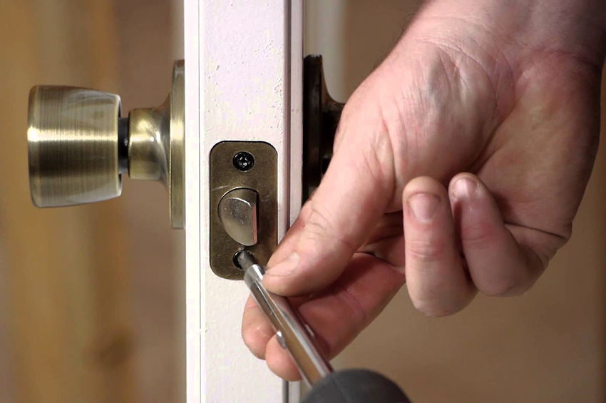 The most suitable area for installing the appliance is under the door handle. Installation on an interior door can be done using hand-held devices. The next stage of installation is to insert the mechanism with the larva into the opening, which was made earlier. The device is fixed using self-tapping screws.