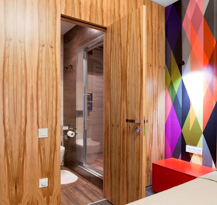 Massive wooden doors in the room