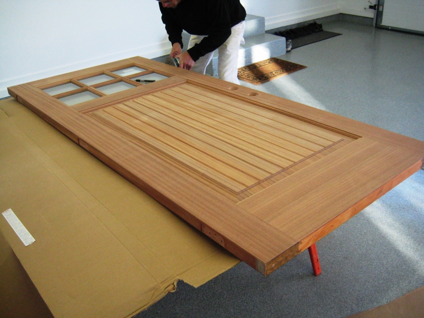 Carry out protective and decorative coatings in the horizontal position of the door. This will prevent drips. If a spray can is used, the intensity of the spray must be monitored and kept at the same distance throughout the application.