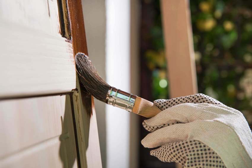According to GOST 9825-73, moisture and weather-resistant paints belonging to the 1st group must be used for covering wooden doors. Before staining, wood must be treated with solutions that prevent decay.