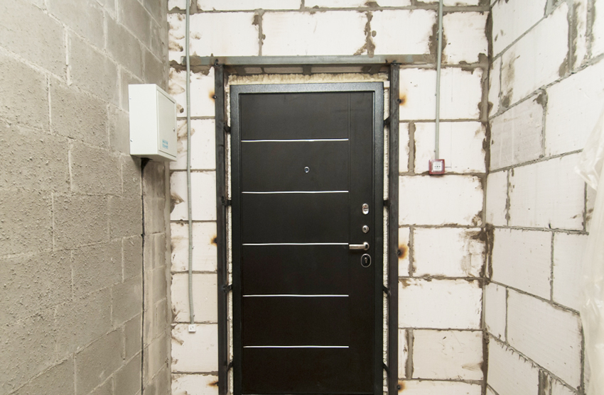 Before installing the metal door, it is necessary to carry out a fine finish. All small cracks should be covered with plaster. More bulky defects are eliminated in various ways. Wide cracks, as a rule, are repaired with brick fragments and covered with cement mortar. To raise the floor level, use a screed or brickwork.