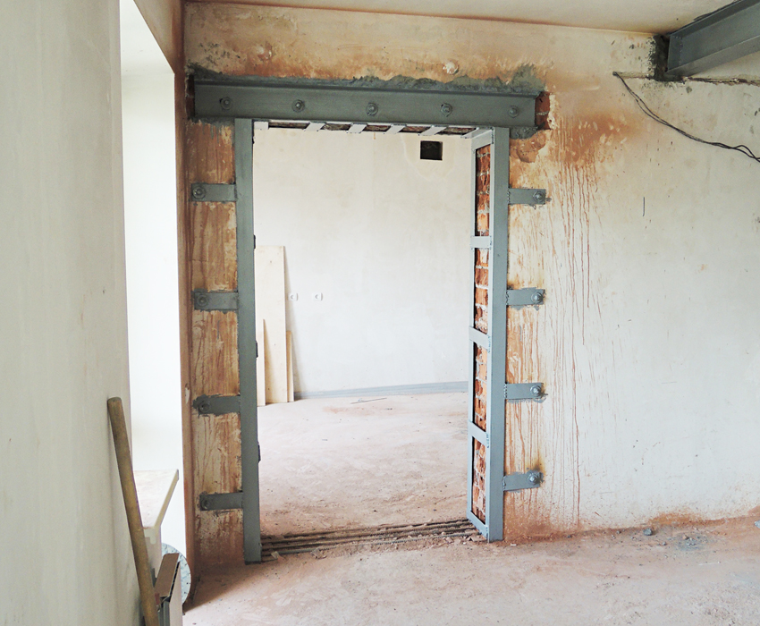 The most common solution to reduce the size of the opening by 5 cm is to use steel corners. They function as a corrective frame. Its assembly is carried out using welding equipment, after which the structure is sealed with cement mortar.