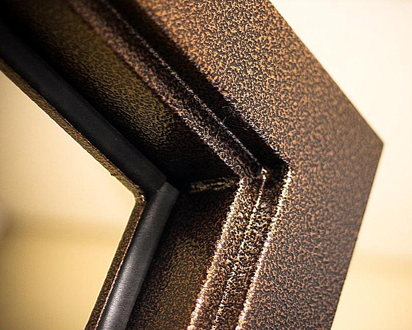 For additional protection, you will need to strengthen the door leaf with a metal frame made of profiled steel. This frame is fixed from the outside of the structure.