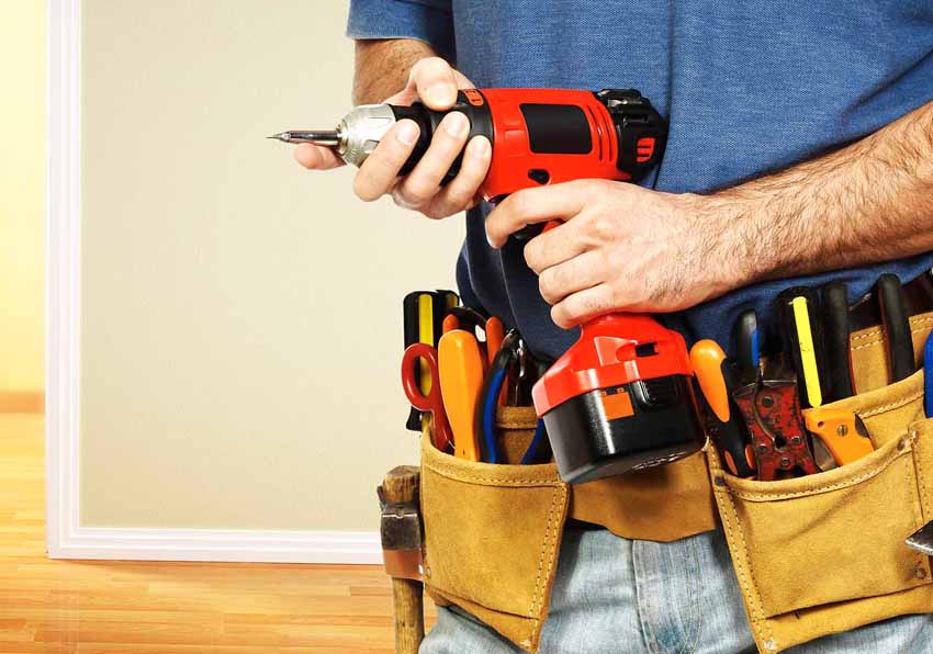 Installing a lock on an entrance metal door: preparing tools