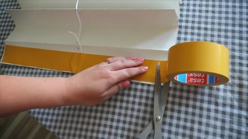 The rope stretched through all the blinds is fixed with double-sided tape to the fold, which is planned as the upper