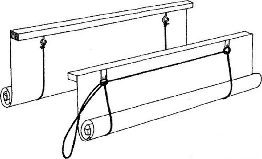 You can hang these air blinds using two rings tied to the upper ends of the rope. They are hung on hooks that are screwed into the upper slope of the window opening. In the case of plastic windows, double-sided tape should be used, since the produced curtain is very light.