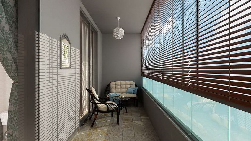 The choice of the design option and the material from which the blinds are made depends on the location of the balcony