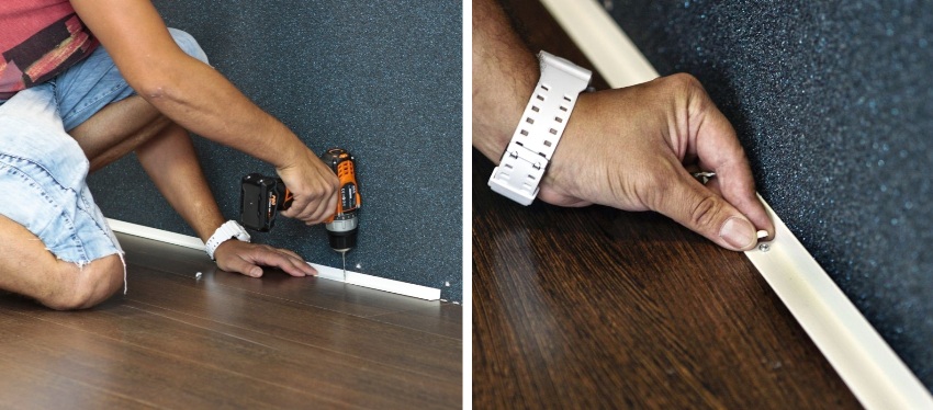The main thing that you need in the process of work is a puncher and the ability to use it. By purchasing skirting boards, you will receive self-tapping screws and brackets in the kit, on which you will mount.