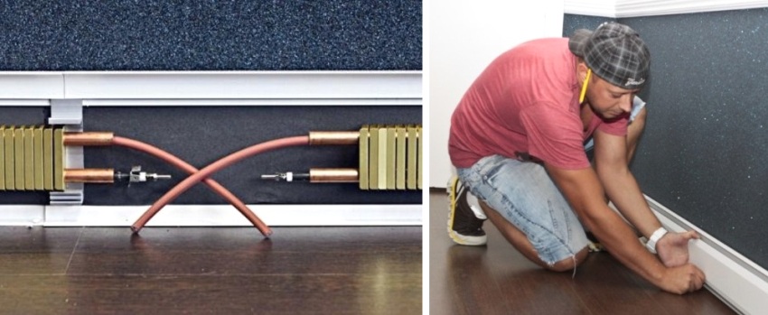 Compared to installing any floor heating system, installing warm skirting boards does not require too much construction work. You can install the plinth yourself, and this is done quite simply. Due to their low weight, such heating devices are easily attached to drywall or any other partitions, and you can not worry about fixing it.