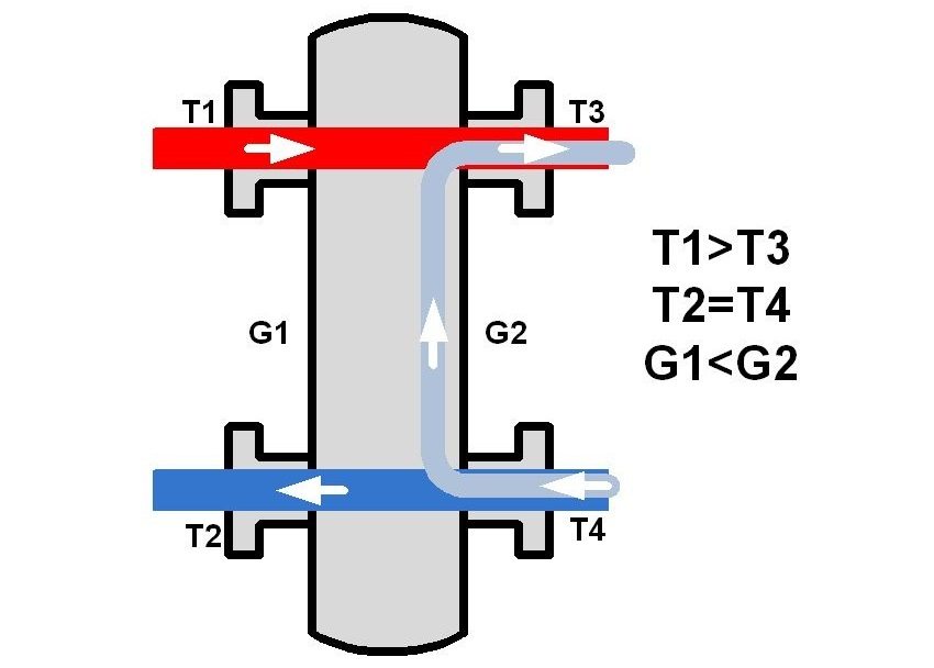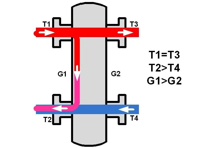 - the knee arrangement of the supply-return pipes ensures the temperature gradient of the secondary circuits;