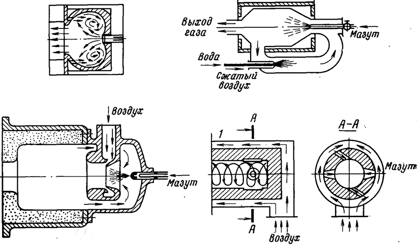 If you look at photos, drawings and drawings, it becomes obvious that the secondary oil forms a thin film on the curved surface. Gas or air is fed into the container through the groove under low pressure. After heating, the oil is sprayed with this air stream, ensuring high-quality ignition.