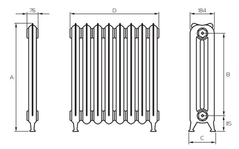 We will consider the technical and dimensional features of the cast-iron type of radiators using the example of an MC 140 500 battery: