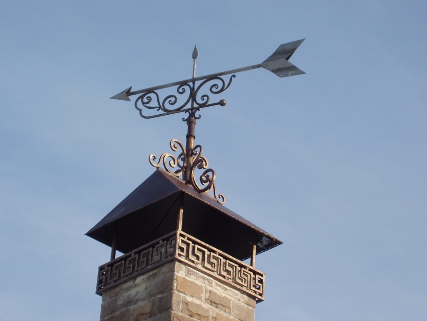Another rather expensive, but very beautiful option is a chimney weather vane. It comes in a wide variety of shapes and sizes, and at the same time perfectly replaces a simple umbrella with a chimney pipe. Many craftsmen believe that using the drawings, it is quite possible to make a weather vane on the chimney with your own hands. However, this requires a lot of skill. The cost of the finished version will cost from 5,000 rubles.