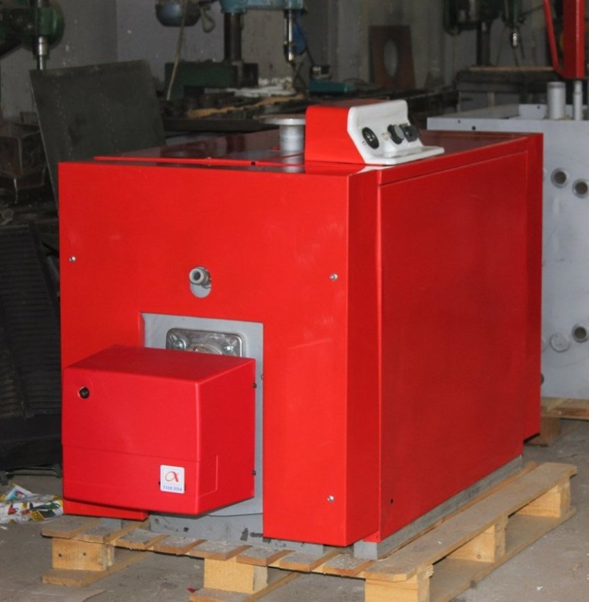 A single-circuit heating device based on the Ecoboil-30/36 can be used to heat a room up to 300 sq. m. It has dimensions 58x60x110 cm. The power of the device is 28 kW. Fuel consumption can range from 0.9 to 1.6 l / h. The boiler works with any type of oil, regardless of its quality. You can also use kerosene and alcohol for it. The cost of the boiler is 460 thousand rubles.