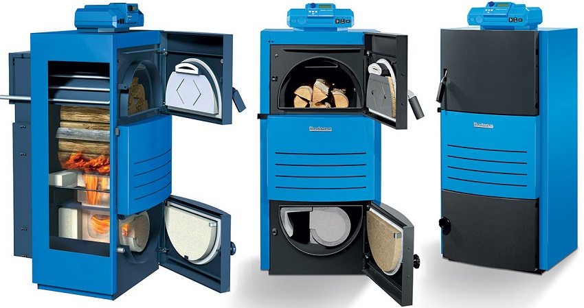 Basic models of long-burning boilers with a water circuit on wood for the home are distinguished by the material of manufacture, the design of the furnace, heat exchanger, chimney, and the method of loading and burning fuel.