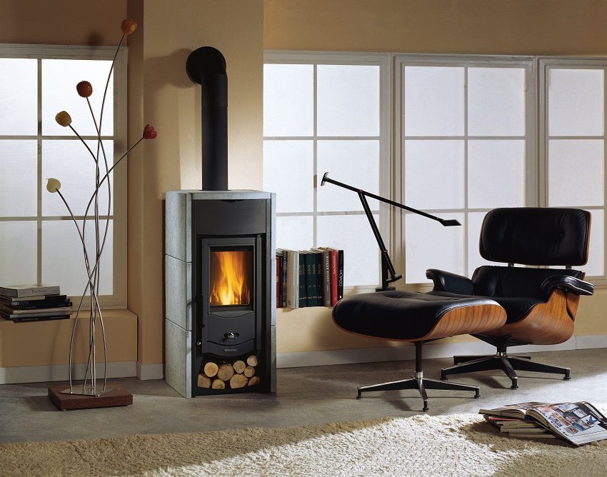 The capacity of a vertical firebox is used for burning firewood from top to bottom. The process is accompanied by a uniform compaction of the load, the release and afterburning of wood gases, and the removal of combustion products into the chimney.
