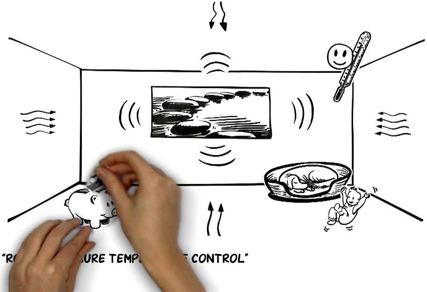 - A film with a reflective effect is glued over the wall. It can be purchased from both the heater manufacturer and any other company. It doesn't really matter. The film is glued so that the monolithic device is completely covered with small projections on each side (literally a few centimeters). Thanks to this, the heat will be completely reflected into the room, and not wasted on heating the wall.