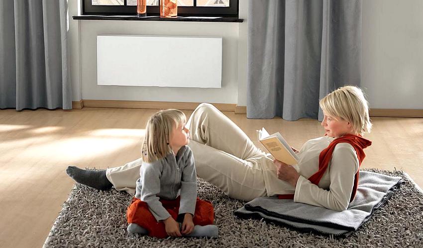 The monolithic unit heats the room using the convection effect. During this, a gradual increase in air temperature occurs in all points of the room. When heated, the air expands, its density decreases, so it rises. The monolithic heater first heats up the air gap opposite to itself, after which, due to the rise of hot streams upward, each subsequent layer is heated.