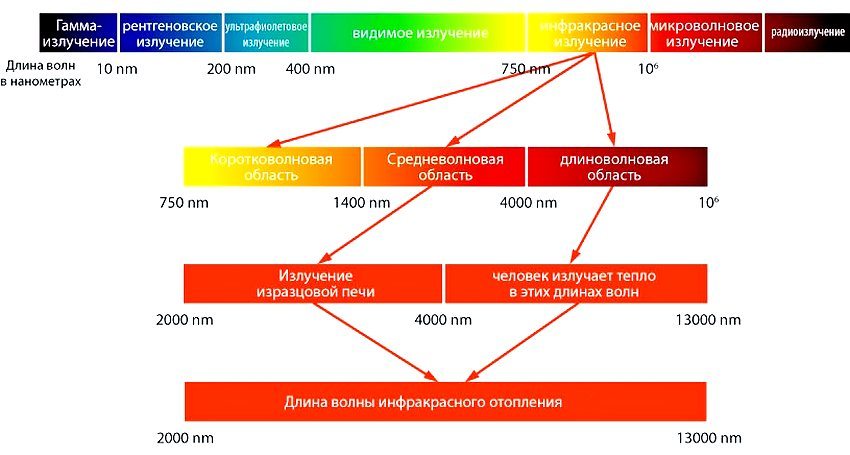 - 300 ° С - long-wave emitters that are not capable of harming human health (provided that the rays are not directed at a person at a right angle);