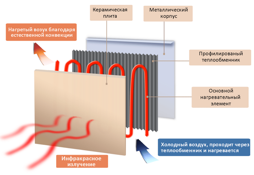 Important! The ceramics used in panel heaters fall within the range of infrared heat flux, which is perfect for a comfortable human perception.