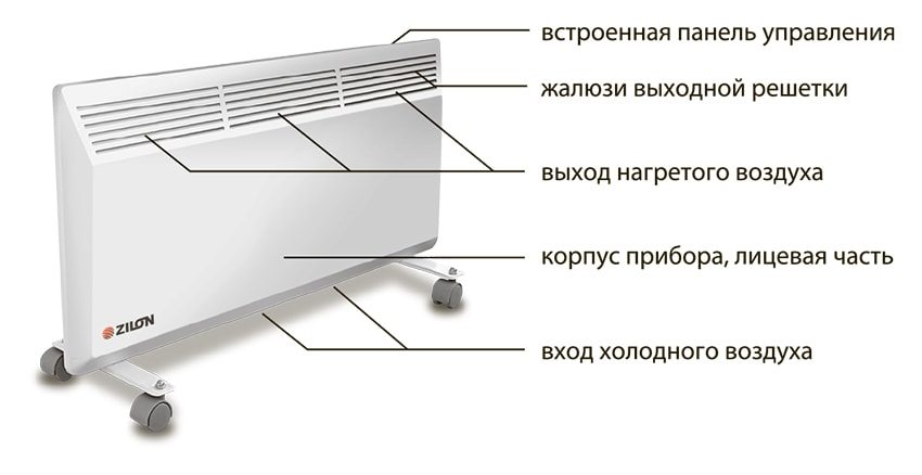The principle of operation of a convector heater is simple and is based on the physical properties of air. Air temperature affects its density. So, cold air is heavier, because it accumulates below, closer to the floor. Warm air is lighter, therefore it tends upward towards the ceiling.