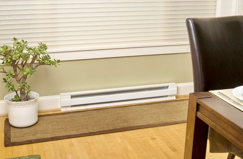 Install electric convector-type heaters on the floor or wall. The choice of its type depends on where you want to place the device. If you want to put a heater under the window opening, take a closer look at the baseboard convectors. They can be moved from place to place using a handle and wheels. Because of the length, frequent movement of the baseboard convector is not always convenient, but you can be sure that the air in the lower part of the room will be well warmed up, and this is especially true when sitting at a computer and a cold parquet floor.