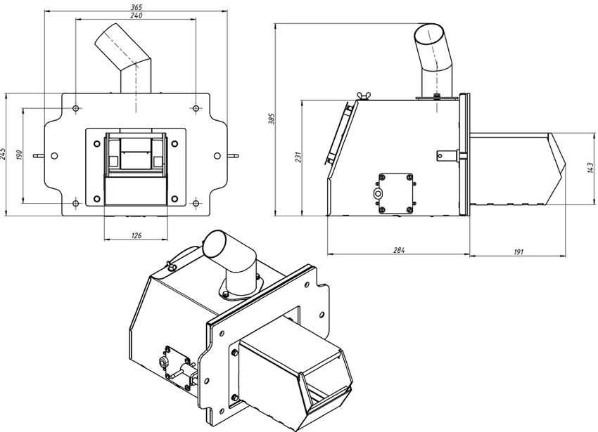 The second necessary element of any burner installed on heating equipment is a hopper. The most common problem that occurs during the operation of self-made devices is associated with the penetration of flame into this structure. In order to assemble a reliable bunker, it is recommended to use the ready-made drawings of the popular Teplodar or Pelletron bunkers. The pellet burner can be made in any capacity, but it is best to take standard 15 kW devices as an example.