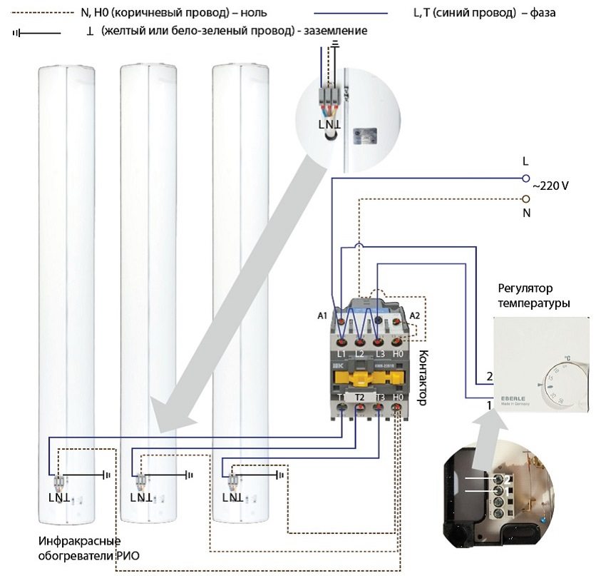 Connection diagram infrared heaters to the thermostat