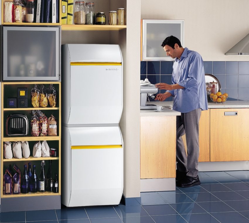 Gas boilers with a closed combustion chamber work thanks to the forced intake of air from the street. The associated exhaust of combustion products heats up a portion of fresh air and increases the efficiency of the heat generator.
