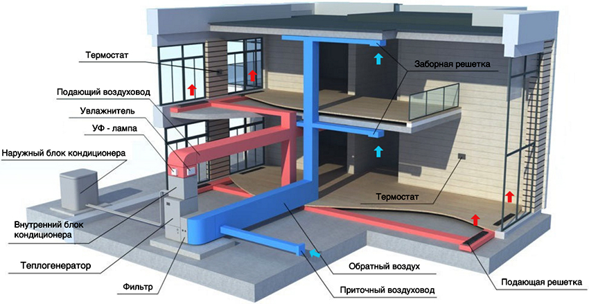 - Mechanical systems. The movement of the air flow through the air ducts is provided by fans.