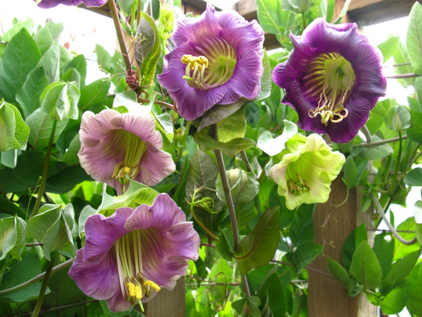 In order for the vine to bloom, it is necessary to feed it with fertilizers weekly. Otherwise, the kobei will grow foliage, but never bloom. In the process of feeding, it is necessary to alternate mineral and organic fertilizers.