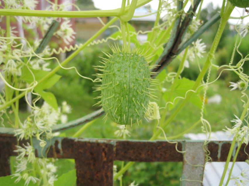 This plant belongs to the pumpkin family and is popularly called the prickly fruit. To obtain all the necessary nutrients, garden soil and natural precipitation are enough for him, although sometimes he can be fed with mineral fertilizers.
