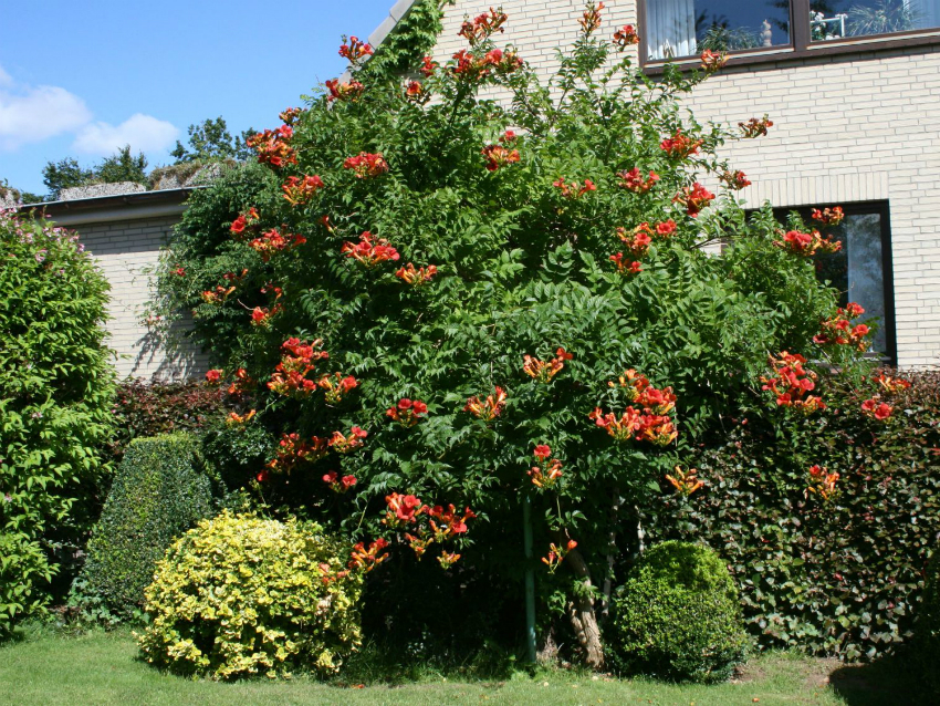 Kampsis vines grow very quickly, so it is better not to plant them right in front of the windows of the house