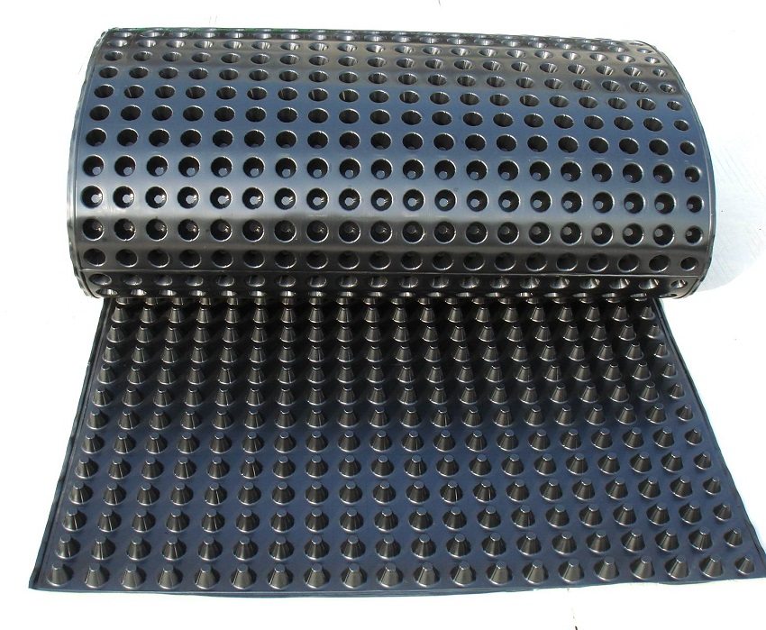 Profiled drainage membrane made of polymer resins perfectly performs the functions of hydro and sound insulation