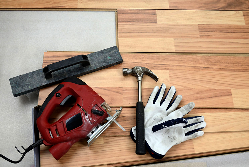 - To prevent crushing of the end seams on the planks, the first board should be laid with the groove against the wall.