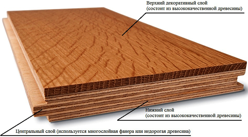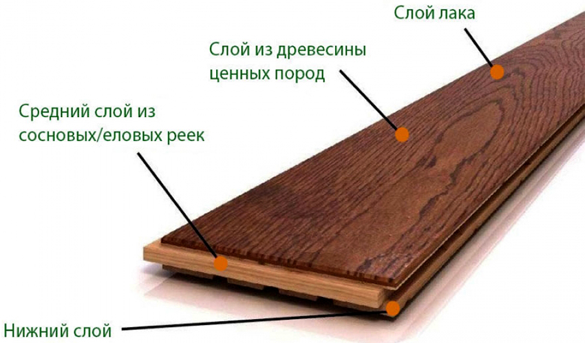 The main feature of the floor covering is its structure. Like engineering, parquet board consists of three layers: