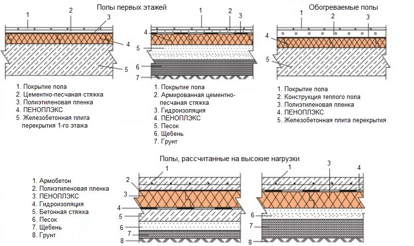 There are several floor bases that can be insulated with foam. There is no significant difference on what the slabs are laid on insulation... The main point here is the need for a waterproofing device for penoplex. This applies to any type of base. The slabs themselves can be laid without fixing or attached with glue or special self-tapping screws with plastic washers. The joints between the plates are glued, foamed polyurethane foam or insulate with tape.