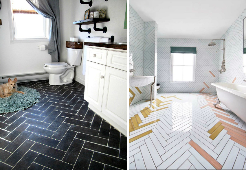 An example of the successful use of the ceramic stacking method bathroom tiles "Herringbone"