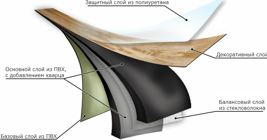 - quartz vinyl, which is the main layer and gives the product the necessary strength;