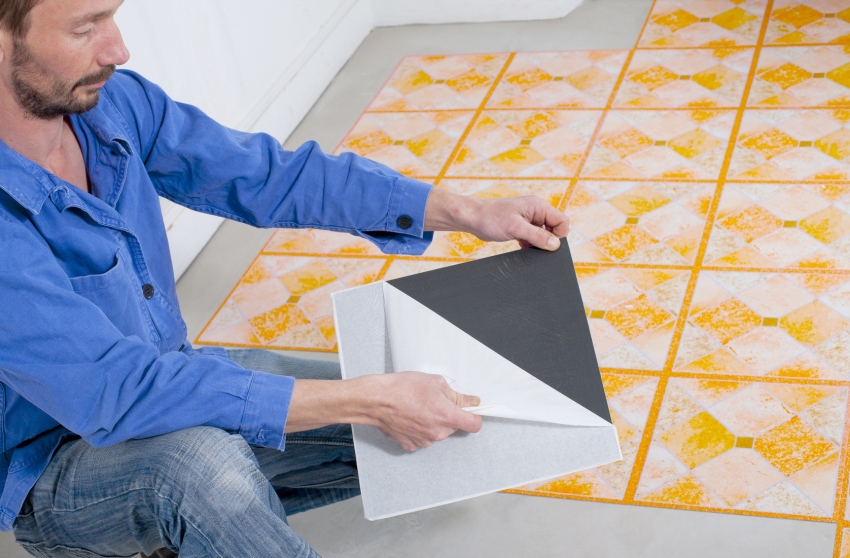 On the construction market, you can find a free-lying type of quartz vinyl tile, which does not require an adhesive for installation.