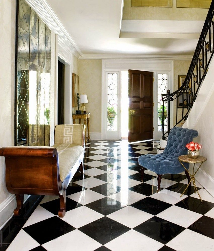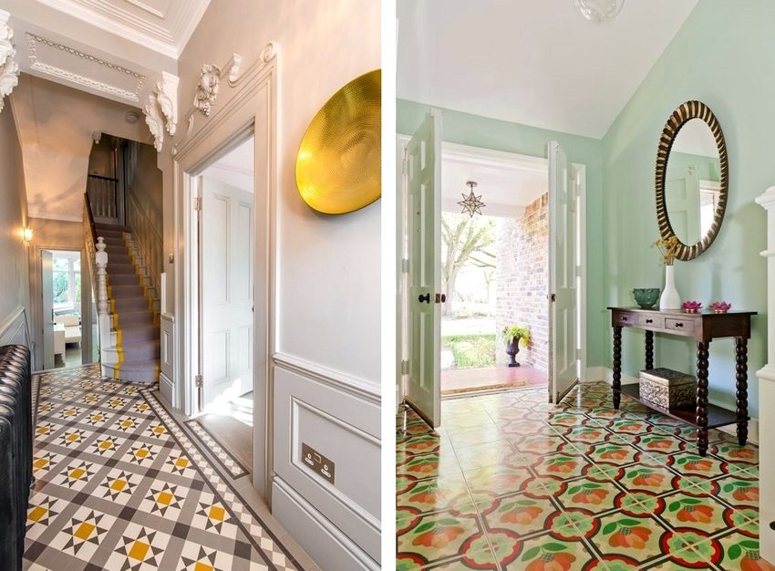 When choosing the size and shape of the tiles, it is important to consider the area of the room. Large square tiles are perfect for a spacious kitchen or hallway, and, for example, using rectangular tiles, you can visually lengthen a short corridor. Looking through the photo of floor tiles for the hallway, you will see examples of such work with space.